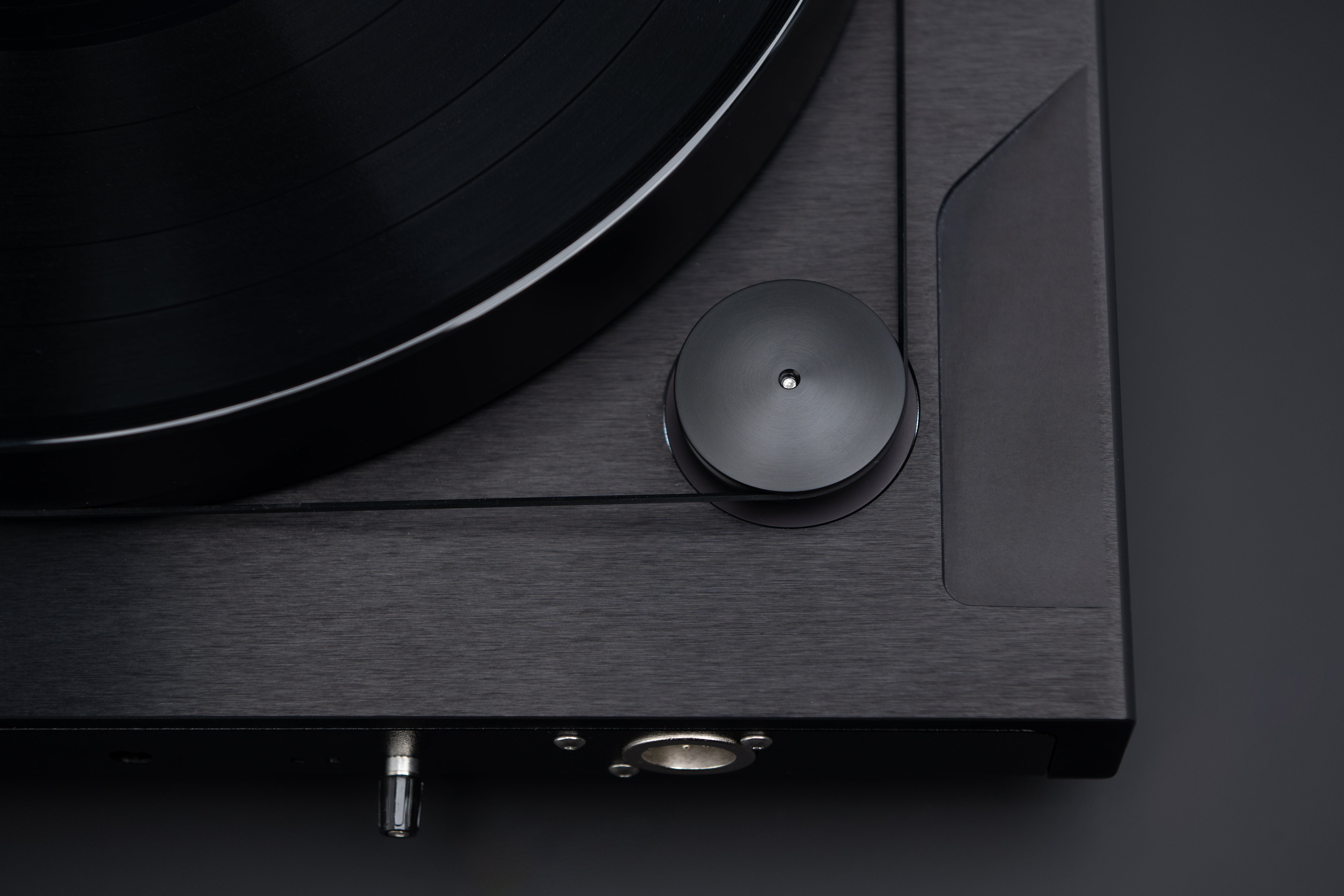 The platter is suspended on a hardened steel axle rotating on an ultra-precise bearing with integrated lubrication that is mounted into a solid aluminium plinth machined from a single aluminium billet.